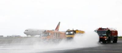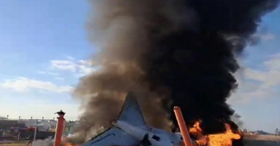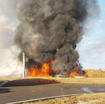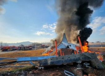 여객기는 활주로 주변 시설물을 충돌하면서 반파됐고, 화재가 발생해 불길에 휩싸였다.