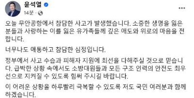 그는 "현재로서는 사고의 원인은 가늠하기 어렵고, 관련 정부 기관의 공식적인 조사 발표를 기다려야 하는 상황"이라면서 "사고 원인을 불문하고 최고경영자로서 책임을 통감한다"고 말했다.