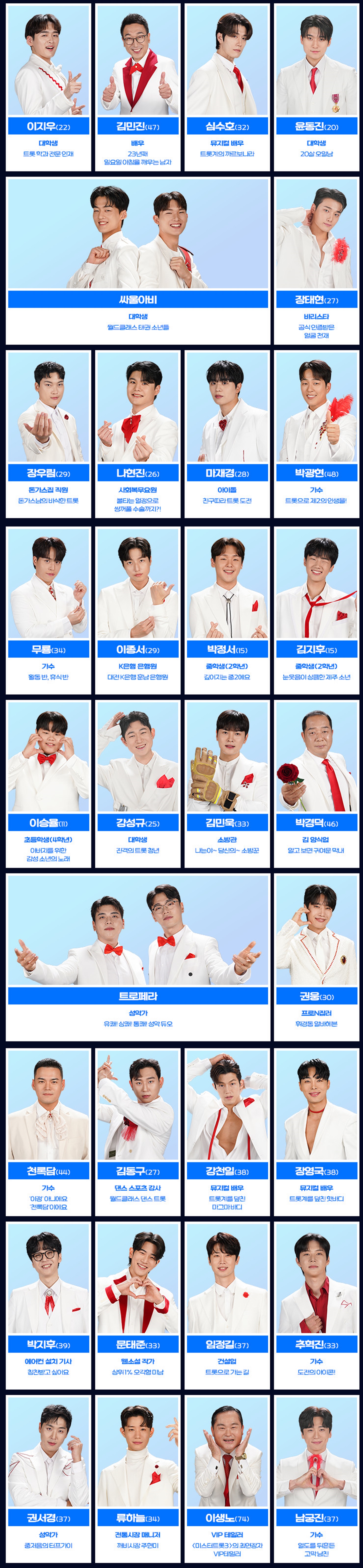 공개된 프로필에 따르면, 현역 가수는 손빈(60), 손빈아(33), 일민(33), 김지훈(38), 신인선(34), 지수현(35), 김지민(60), 정세민(28), 고정우(27), 이수호(25), 김윤오(33), 황준(37), 춘길(모세, 45), 무룡(34), 천록담(이정, 44), 추혁진(33), 남궁진(37), 견우(42), 한이재(31), 오강혁(37), 강민수(33), 강훈(33), 임찬(32) 김용빈(33), 홍성호(34), 남승민(23), 최윤하(30)까지 다수가 참가한다.