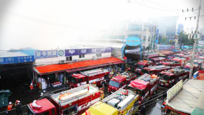 소방 등에 따르면, 청과물시장의 화재는 오전 7시 19분쯤 초진이 끝나 현재 잔불 정리 중이다. 소방 측은 앞서 불길이 잡히지 않으면서 오전 4시 54분 발령했던 대응 2단계를 7시 26분 1단계로 하향했고, “계속 잔불을 진화하고 있는 상황”이라고 전했습니다. 현장 출동 인력은 266명으로, 소방차량 58대를 동원해 불을 끄고 있으며.