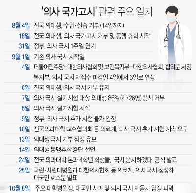 정부가 주요 대학병원장들까지 나선 의대생 국가고시 재응시 요구를 사실상 거부했다. 국민 생명을 볼모로 벌인 단체 행동에 대한 국민적 공감대가 형성되지 않은 점을 지적하며 '재시험 불가' 입장을 고수했다.