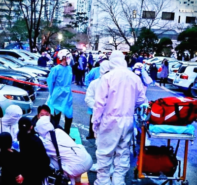 소방당국은 불이 나자 소방관 등 인력 105명과 펌프차와 고가굴절 사다리 차량 등 장비 43대를 동원, 화재 발생 30여분 만인 오후 5시11분쯤 불을 껐다. 이 불로 A(31)씨와 B(38‧태국 국적)씨 등 근로자 2명과 C(35‧여)씨, D(51‧여)씨 등 주민 2명 등 모두 4명이 숨졌다.