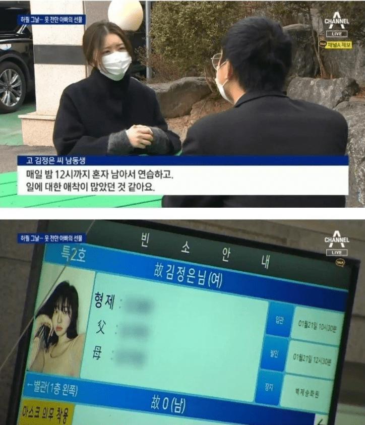 김 씨의 남동생은 “매일 밤 12시까지 혼자 남아서 연습하고 일에 대한 애착이 많았던 것 같다”면서 월급을 모아 전세 보증금을 마련할 정도로 누나는 생활력이 강했다고 했다.