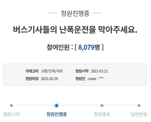 버스 기사의 난폭운전을 막아달라"는 청와대 국민청원까지 등장했다.