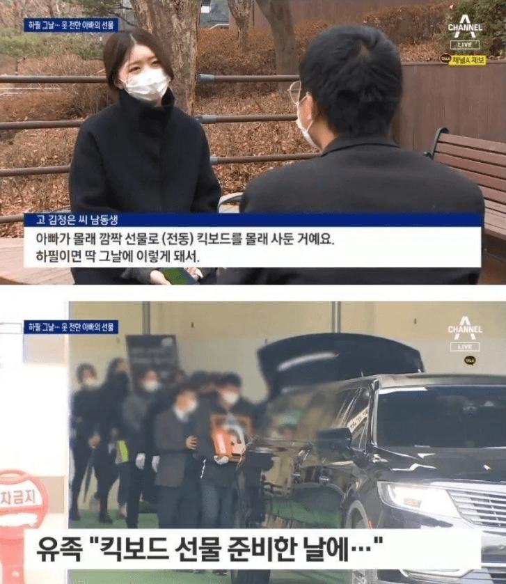 김 씨의 남동생은 “차를 사줬더라면, 내가 그냥 킥보드 가져다 미리 줬으면, (아버지가) 그날에 대한 모든 걸 후회하고 있더라”고 말했다.