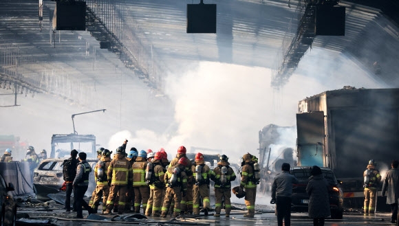 사고를 목격한 렉커차 기사 심모(37)씨는 "폭발이 연이어 8번에서 9번 가량 이어졌다"며 "이후 사고현장에서 연기가 너무 갑자기 들어차면서 인근 차량 운전자들도 차량을 버리고 터널 밖으로 나왔다"고 당시의 급박했던 상황을 설명했다.