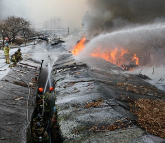 소방당국은 불이 난 마을 주택에 '떡솜'이라 불리는 단열재 등 불에 잘 타는 자재로 지어진 판잣집이 밀집해 불길이 빠르게 번진 것으로 추정 중이다.