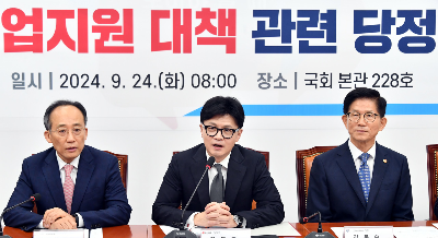한동훈 대표는 국회에서 열린 청년 취업지원 대책 관련 당정 협의회의에서 국민의힘은 청년의 힘이 되고 싶다. 그러기 위한 정책을 최우선으로 할 것”이라며 “격차 해소 정책도 결국은 청년 삶을 개선하기 위한 것에 목표를 둔다”고 말했다.